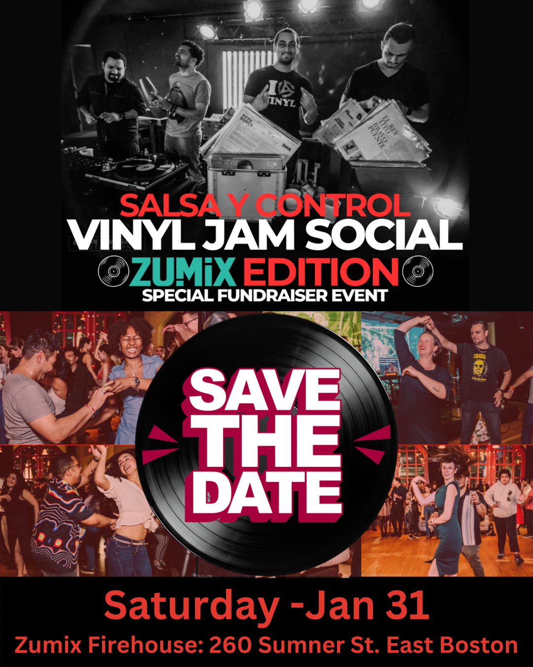 Salsa y Control Vinyl Jam Dance Social Event January 31 @ 6:30 pm - 11:00 pm Zumix 260 Sumner Street, Boston, MA, United States